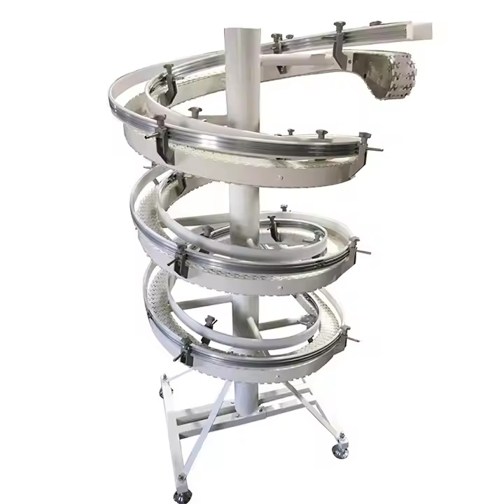 Sistema que permite almacenar temporalmente productos en una trayectoria vertical tipo espiral, sin detener completamente el flujo de producción. Está diseñado para acumular producto de forma continua, especialmente cuando hay diferencias en la velocidad entre dos procesos (por ejemplo, entre producción y empaque).