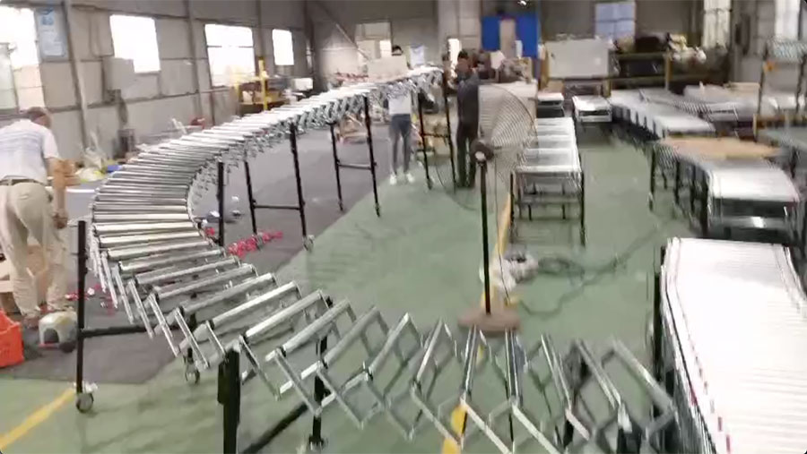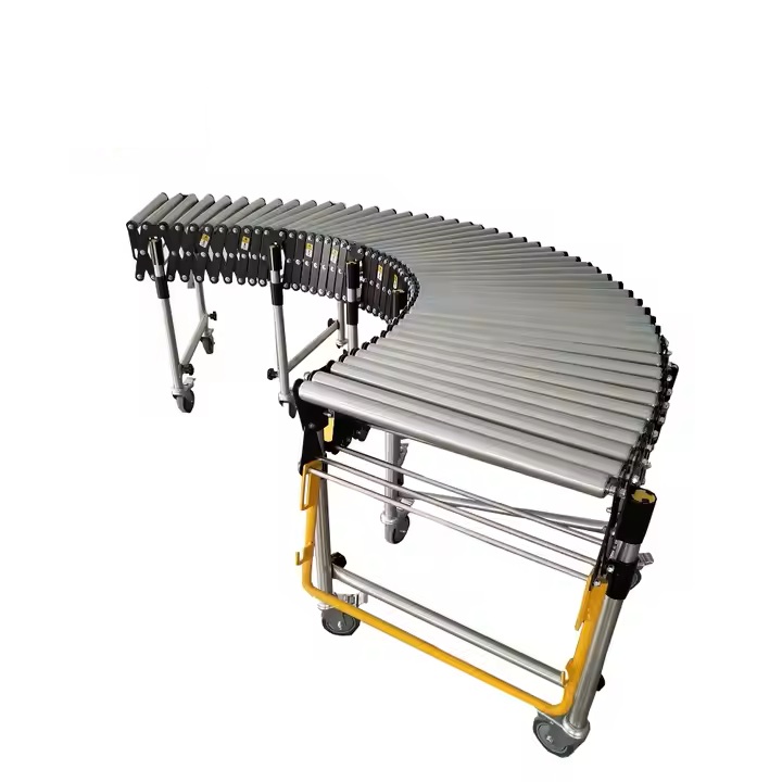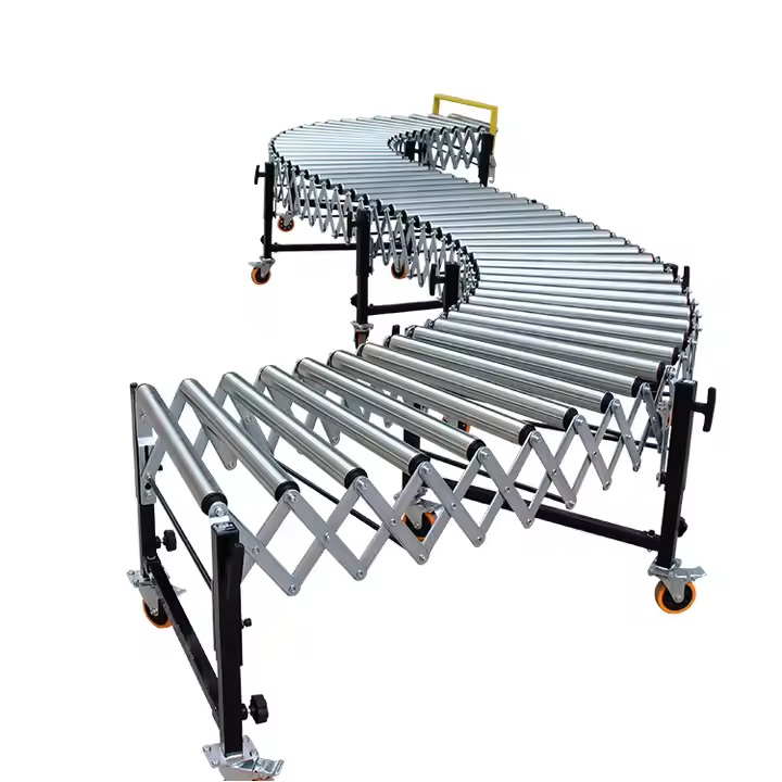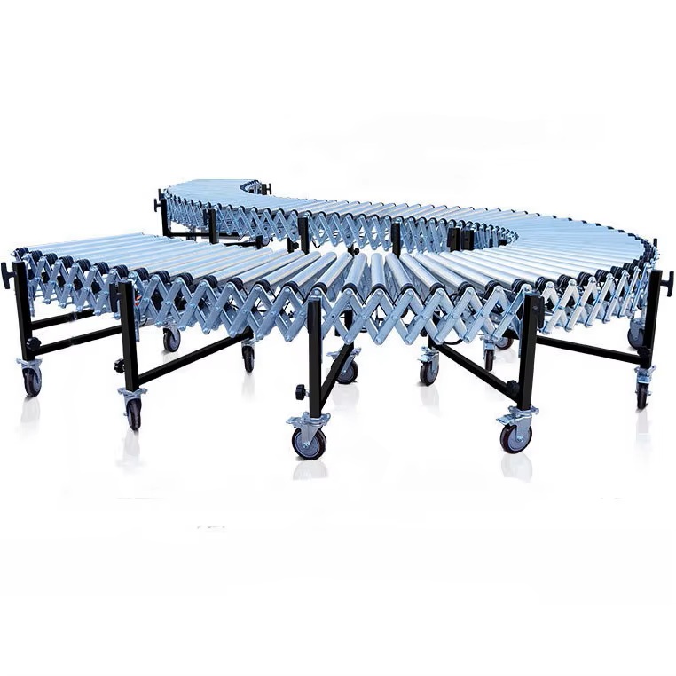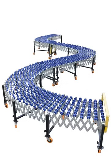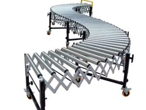 Sistema modular y retráctil compuesto por una estructura tipo acordeón o telescópica, equipada con rodillos o ruedas por donde los productos se desplazan por su propio peso (gravedad), sin necesidad de un motor. Este tipo de transportador puede extenderse, contraerse, curvarse o moverse fácilmente, lo que lo hace muy versátil en operaciones logísticas como carga y descarga de camiones, traslados internos o zonas temporales de picking.