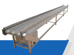 Sistema de transporte que utiliza una banda fabricada en acero inoxidable, acero al carbono, galvanizado u otros metales. Estas bandas pueden estar construidas con mallas, placas, eslabones o rejillas metálicas, y están diseñadas para trabajar en condiciones extremas de temperatura, abrasión o carga pesada, donde otros tipos de bandas (plásticas o de goma) no son adecuados.